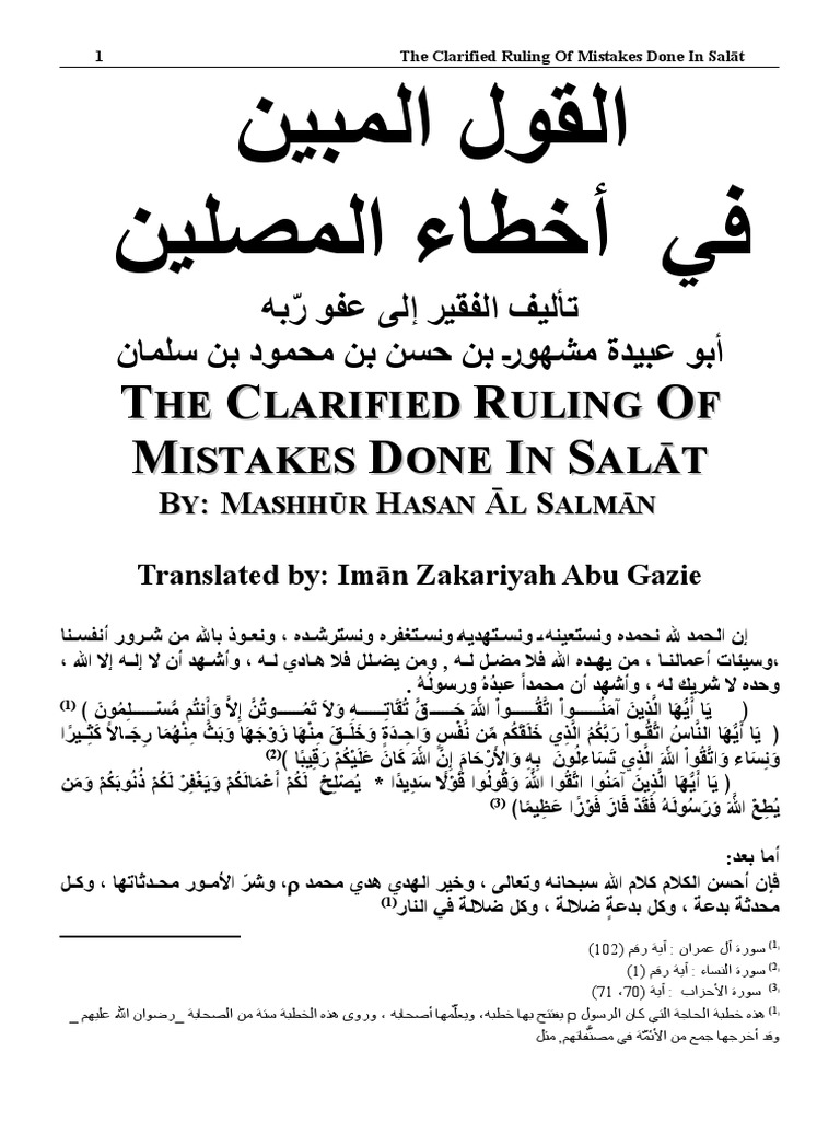 The Clarified Ruling Of Mistakes Done In Salat Mashhur Hasan