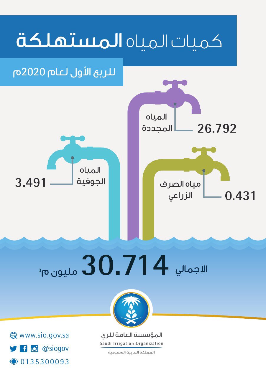 المؤسسة العامة للري On Twitter إجمالي كمية المياه المقدمة من المؤسسة العامة للري ضمن نطاق اشرافها على مستوى المملكة خلال الربع الاول لعام 2020م احصائيات الاحساء الرياض القطيف دومة الجندل الافلاج Https T Co 9yadadlxvs