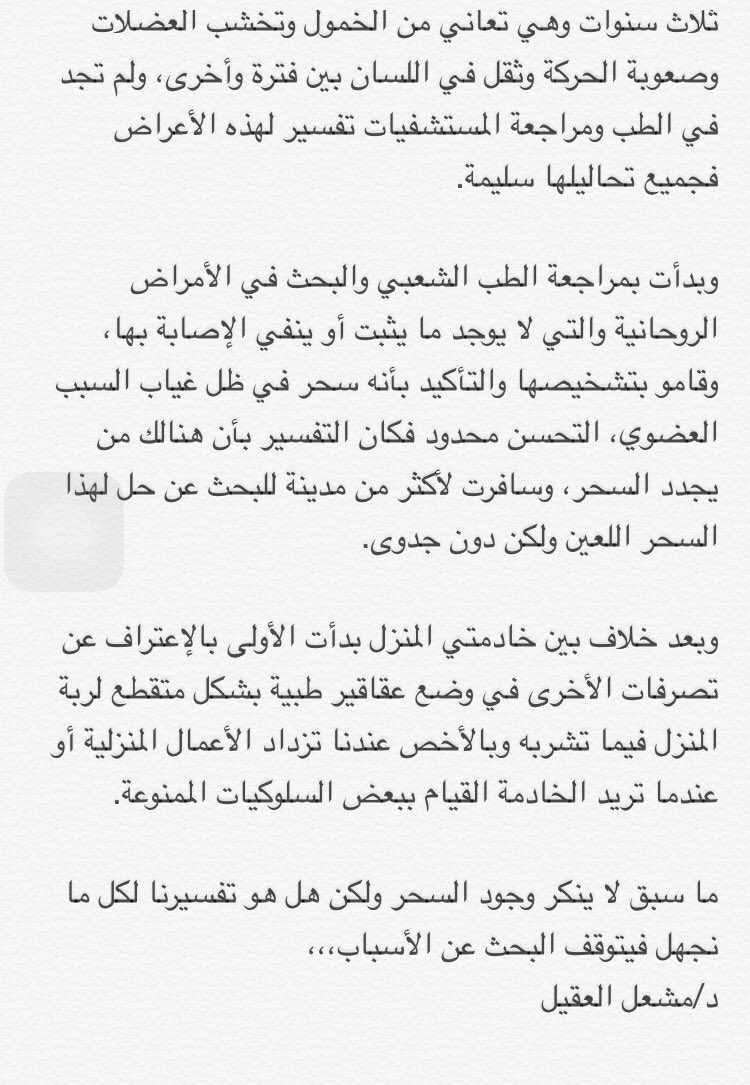 د مشعل العقيل On Twitter من العيادة ليست إنكارا للسحر ولكن لا للإفراط في استخدامه في تفسير ما نجهل وتوقف البحث عن المسببات تجارة الوهم