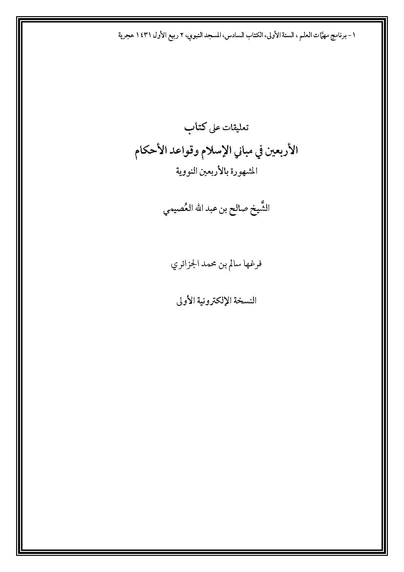 تفريغ شرح الأربعون النووية