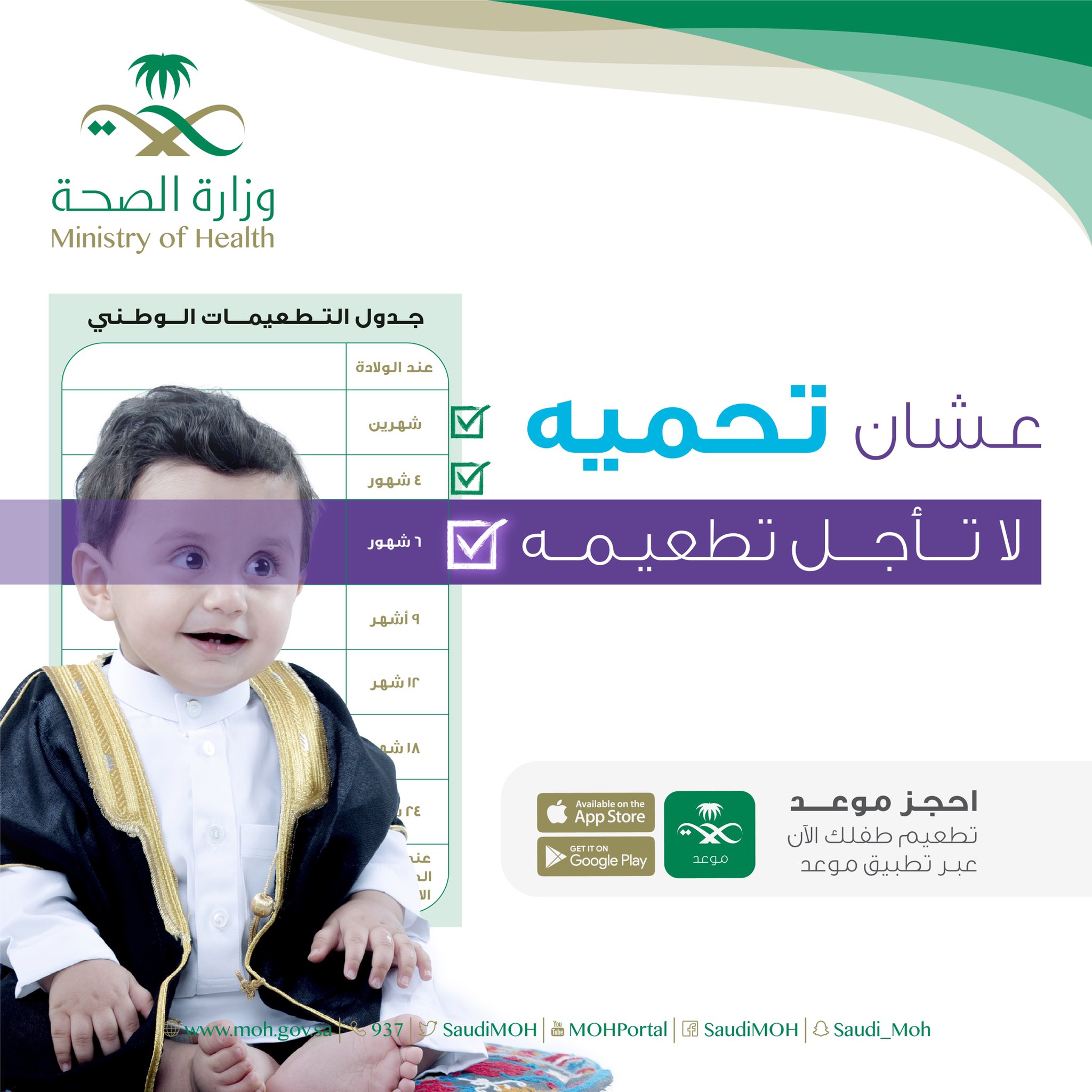 و ز ا ر ة ا لـ صـ حـ ة السعودية Auf Twitter لحماية طفلك من الأمراض اتبع جدول التطعيمات الوقائية لا تأجلها واحجز موعد تطعيم طفلك الآن عبر تطبيق موعد Https T Co Ygrhxyt3do Https T Co G5zhtz0opg